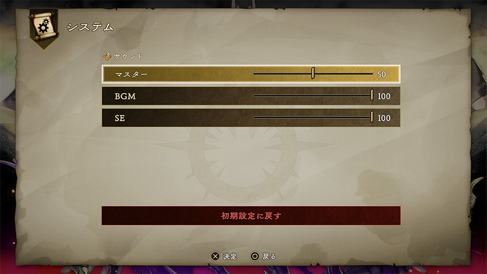 | BGM | BGMの音量を調整します。 |