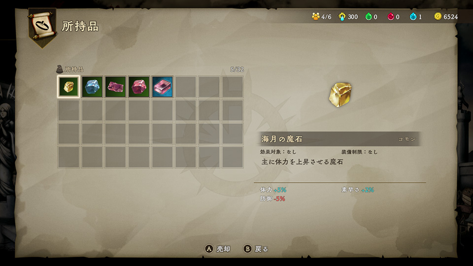 不必要になった装備品は、売却することが可能です。