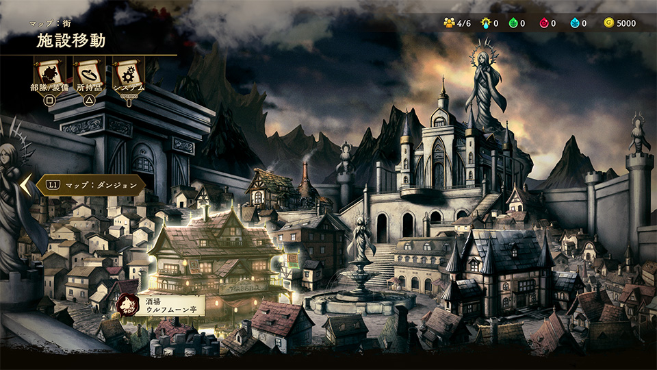 この街には様々な施設があり、冒険を進めると使えるようになります。