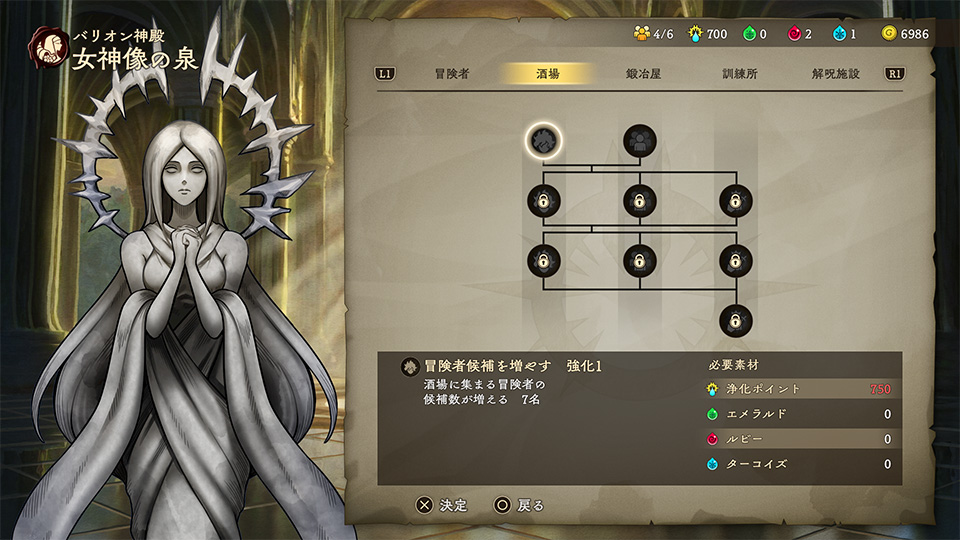 バリオン神殿「女神像の泉」では、施設のスキルツリーを解放することができます。