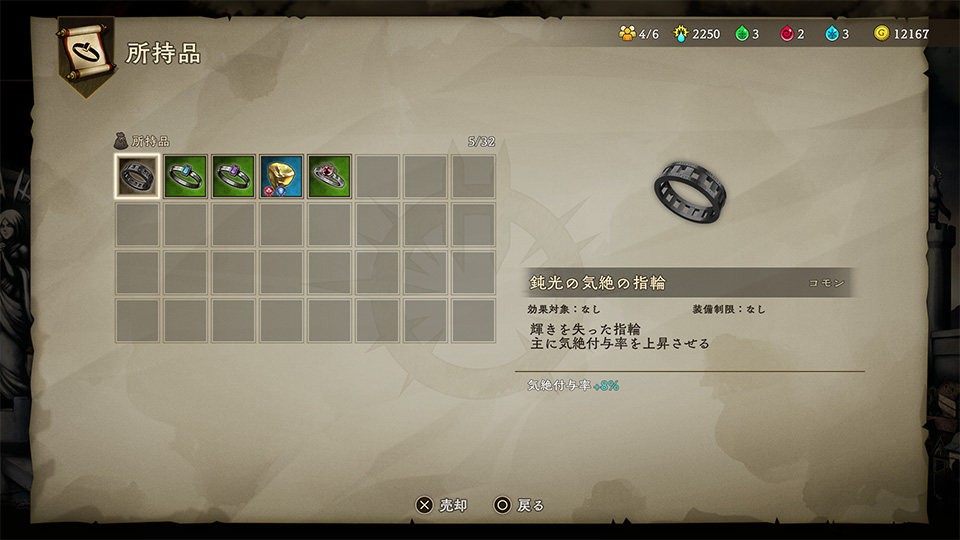 不必要になった装備品は、売却することが可能です。