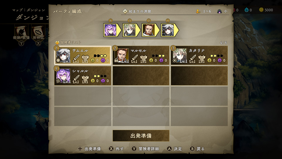 部隊からクエスト探索に出発する、冒険者を選択します。