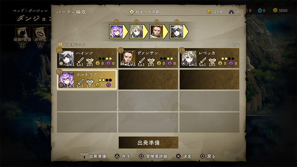 部隊からクエスト探索に出発する、冒険者を選択します。
