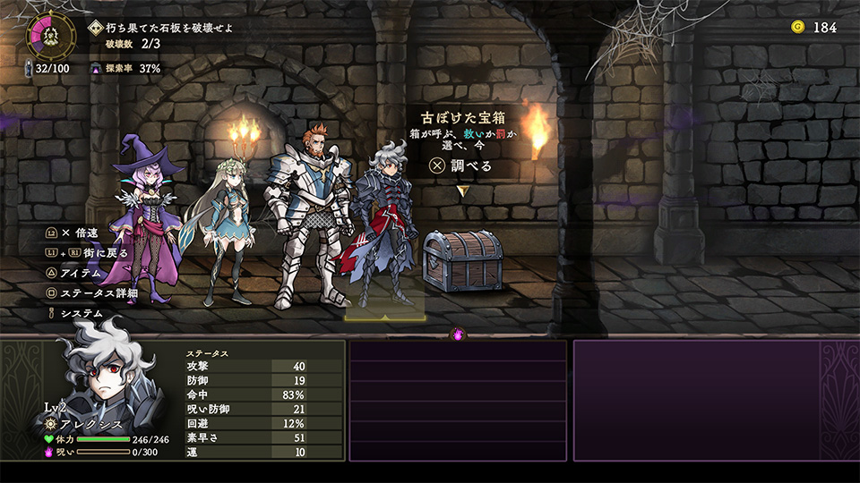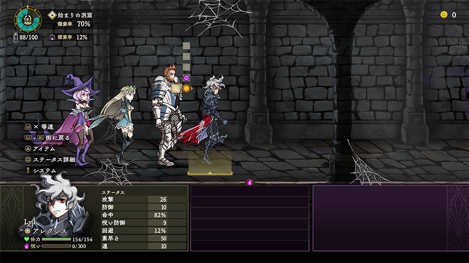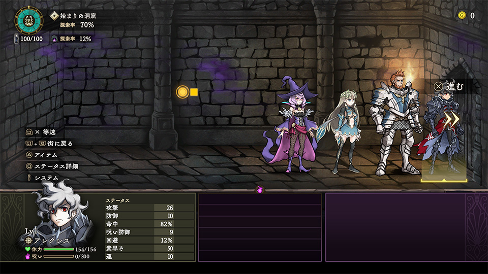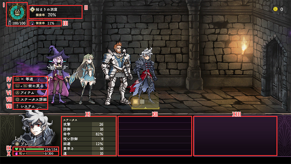 | III | 探索率 | ダンジョンの探索率です。街での解呪の進行に影響します。 |