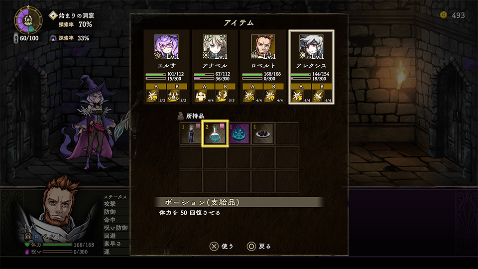 アイテムを使いたいキャラクターを方向キー(左/右)で選択し、ボタンを押下します。