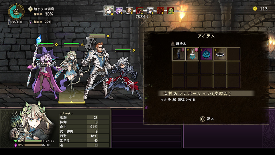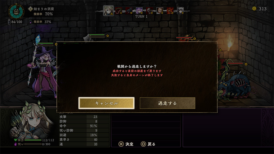 | IV | 逃走 | バトルから逃走します。直前の部屋に戻ります。 |