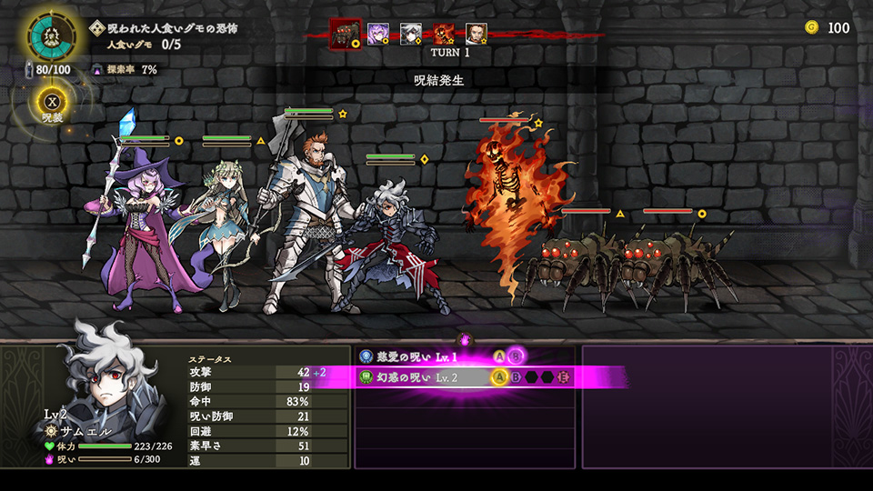 ダンジョン探索を通じて、キャラクターは「呪い」を受けます。