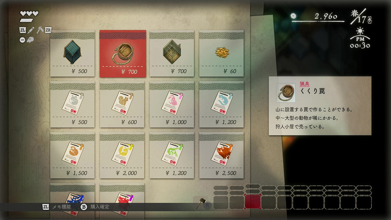 弓で狙いを定めて仕留めるもよし、巧みに罠を仕掛けるもよし、刺激的な狩猟生活があなたを待っています!