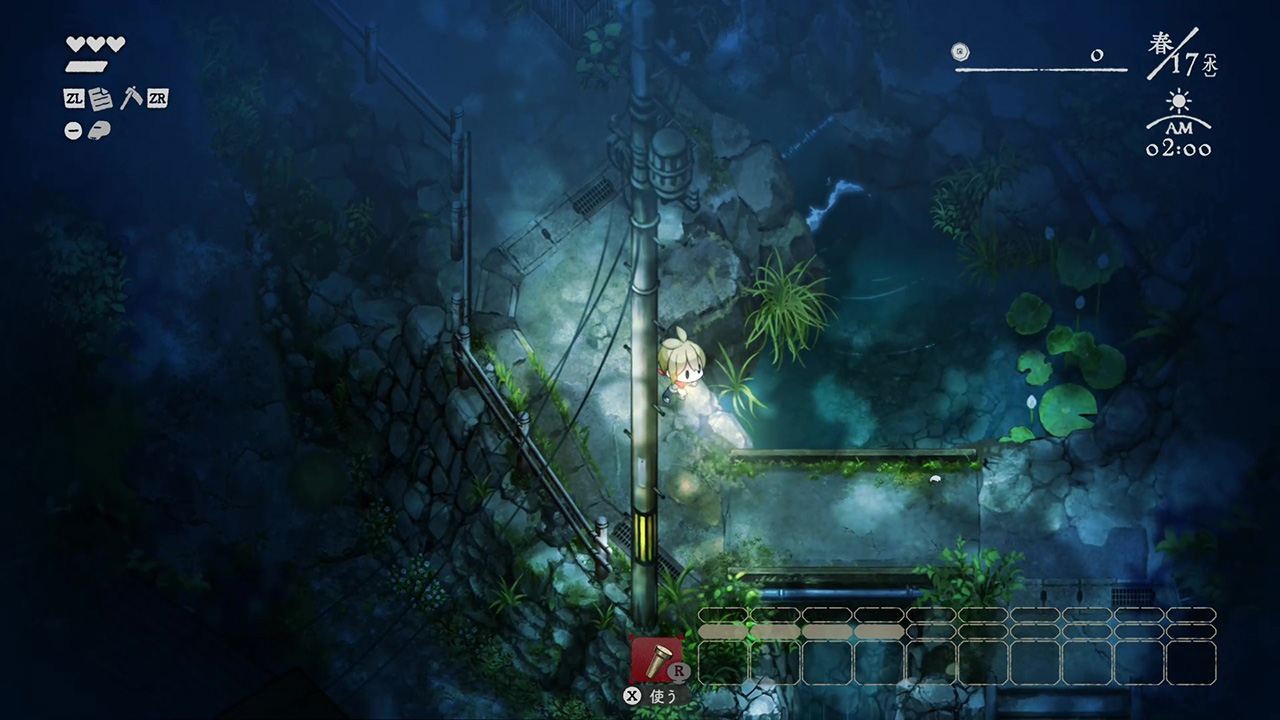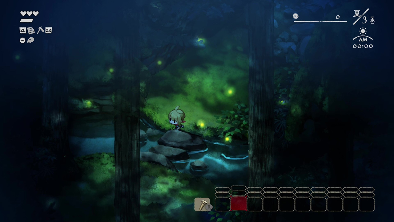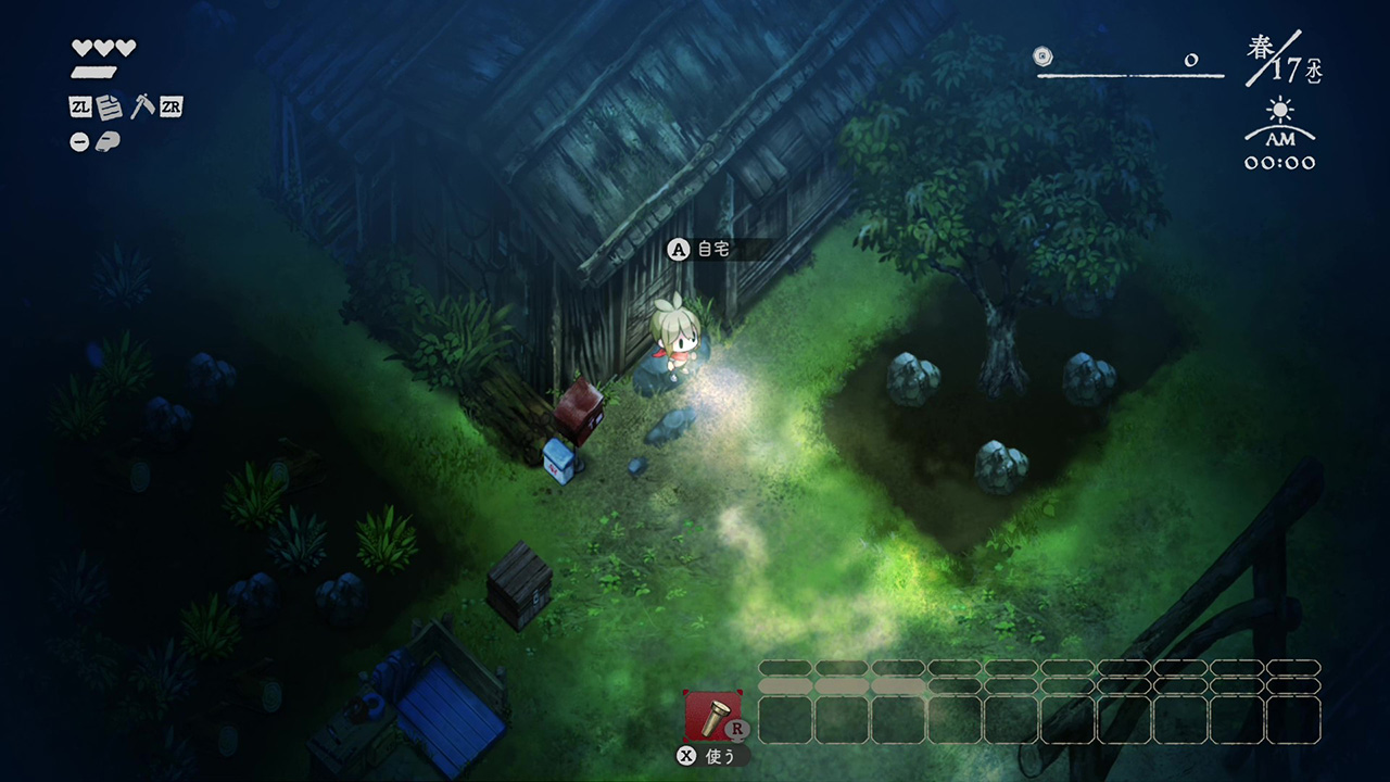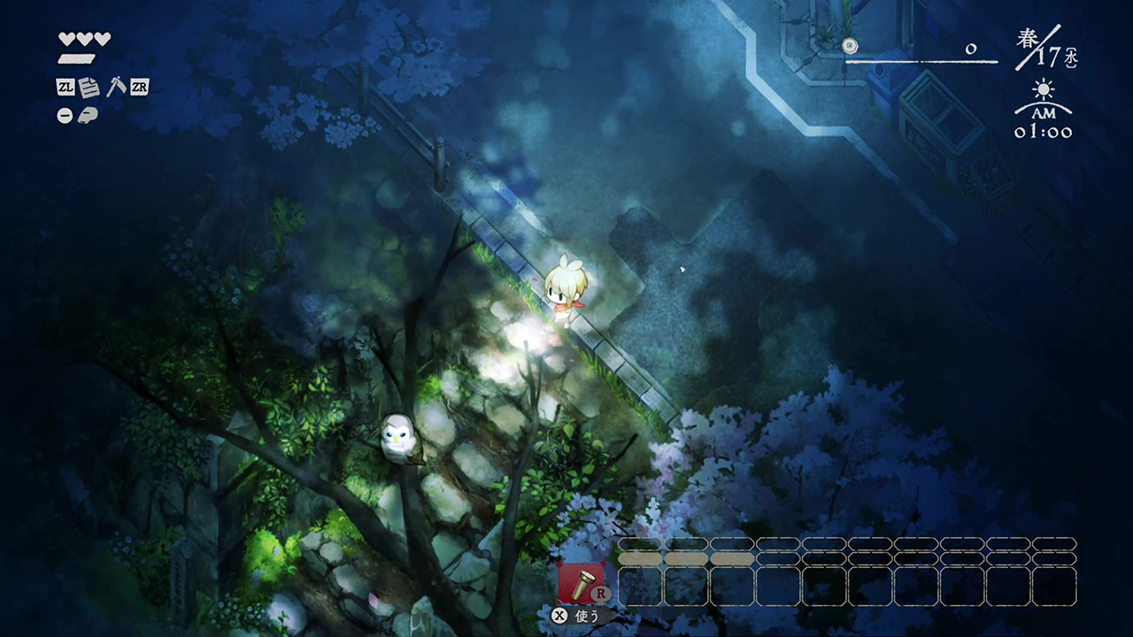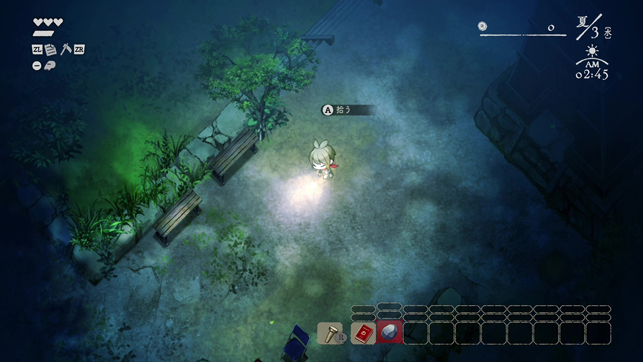 夜道を探索して昼の生活に役立つ素材を集めましょう。
