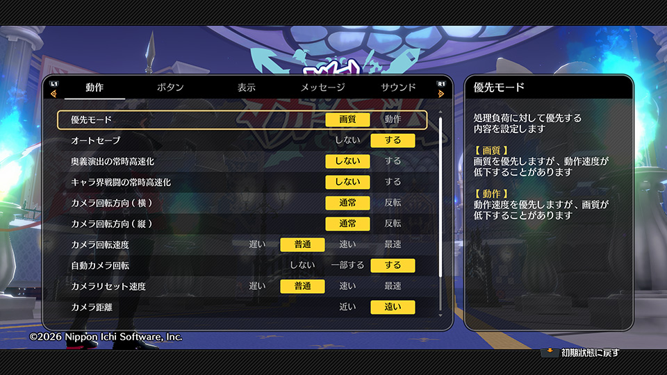 | 優先モード | 処理負荷に対して優先する内容を設定します。 |
