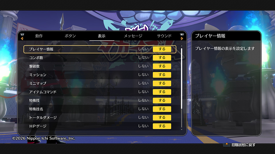 | 範囲選択中の表示 | 奥義の範囲選択中におけるプレイヤーの表示を設定します。 |