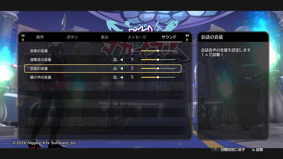 | メッセージ自動送り | メッセージの自動送りの有効/無効を設定します。 |
