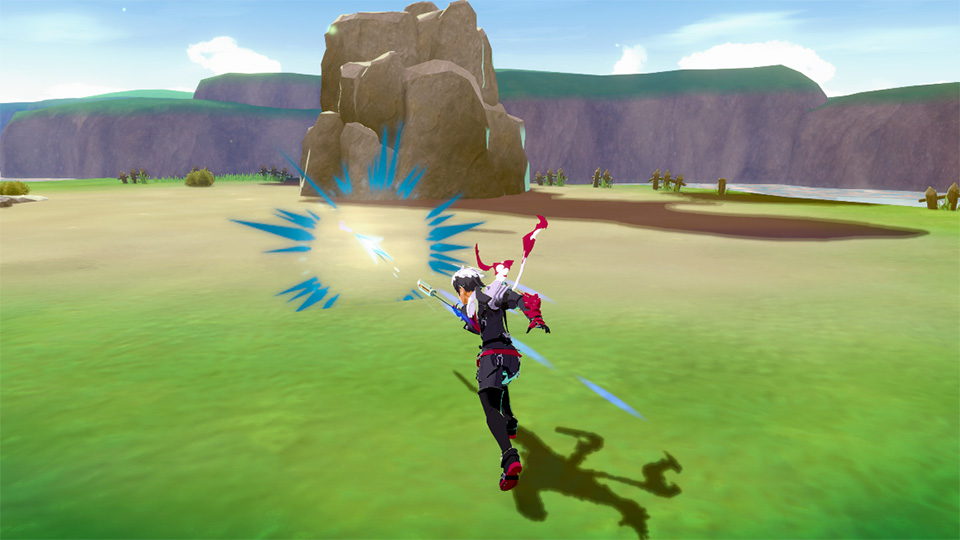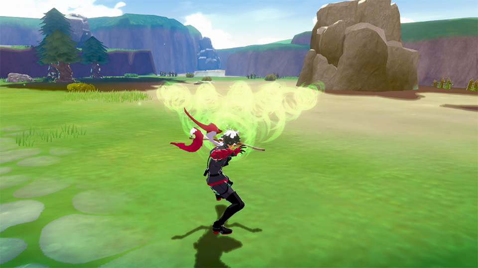 連続攻撃中にボタンを押すと、連続攻撃の段階に応じて力が溜まった状態から薙ぎ払いを行います。