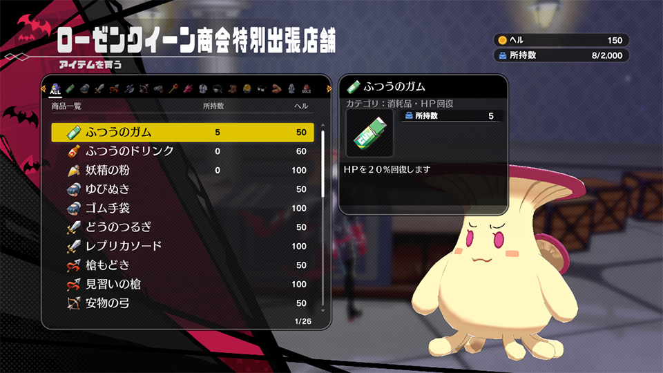 よろず屋では、アイテムの購入や売却が行えます。