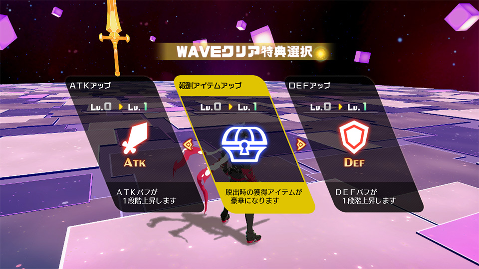 アイテム界では、WAVEごとに出現する大量の敵を倒すことで、アイテムレベルを上げることができます。