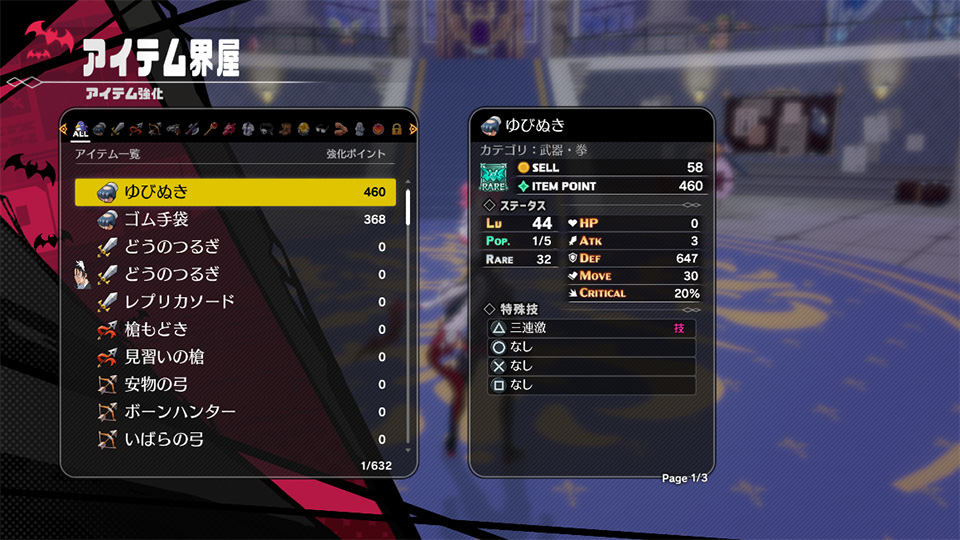 アイテム強化では、アイテムポイントを使用して装備アイテムの性能を高めることができます。