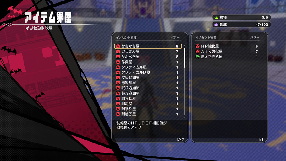 よく使用する装備アイテムに強力なイノセントを移動させることで、戦闘をより有利に進められるでしょう。