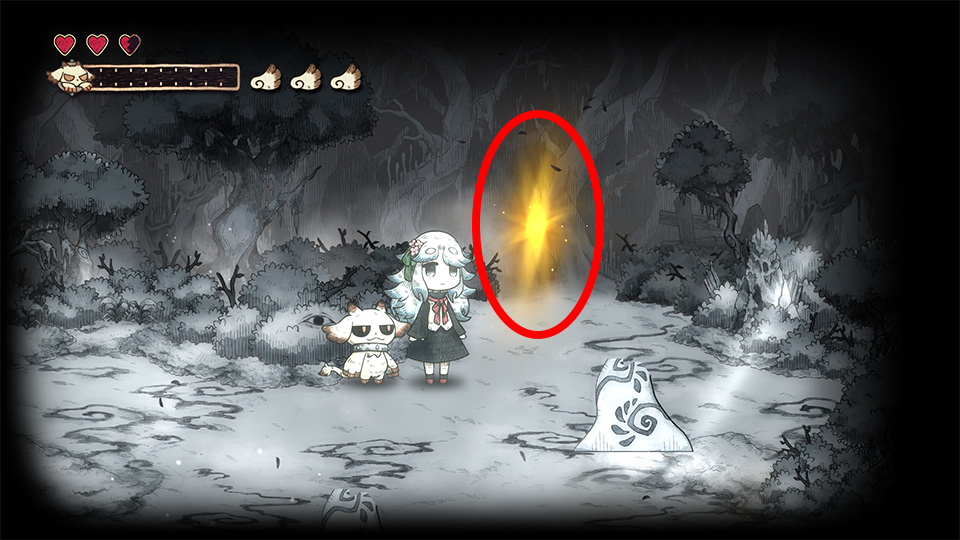 道を開く方法は様々なので、メェルに周りの物を食べてもらったり、記憶のしおりを集めたり、色んなことを試してみましょう。