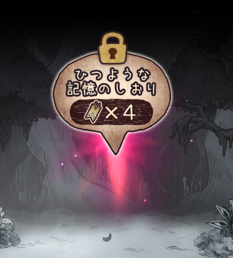 少女の記憶のカケラです。 たくさん集めるほど、絵本の世界のおくに進めるようになります。 記憶の中身は、システムメニューの『記憶のしおり』で詳しく見ることができます。 |