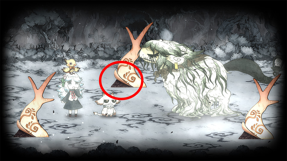 紙喰いは、モノクロ(白と黒)で描かれた物を壊すことができますが、カラーで描かれた色あざやかな物やトゲトゲしたもの、固すぎるものは、メェルのキバが通じず、壊せません。