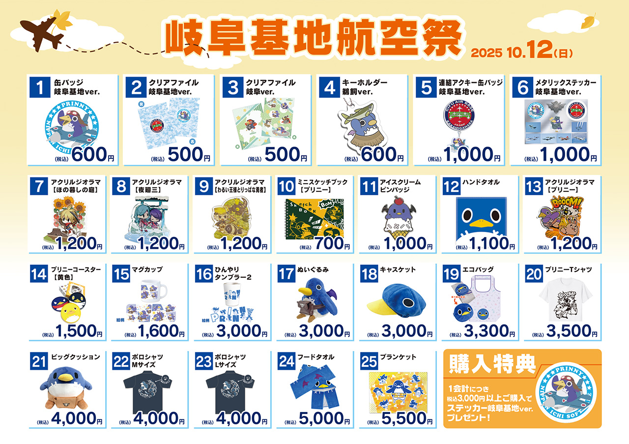 1会計につき、税込3,000円以上ご購入でステッカー岐阜基地ver.をプレゼント!