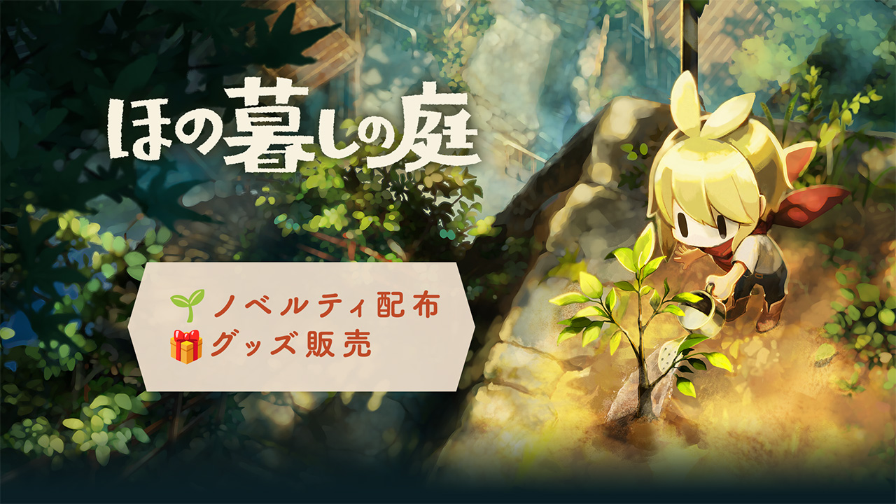 『ほの暮しの庭』の舞台となる「彼ヶ津村(かがつむら)」の雰囲気を味わえるノベルティの配布や新グッズの販売を行います。