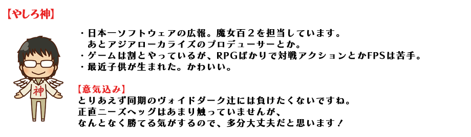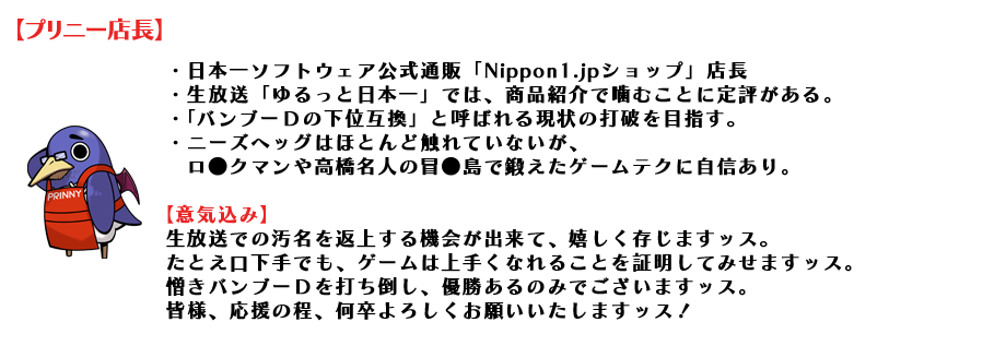 日本一ソフトウェア公式ツイッターにて8名の選手の紹介ツイートが掲載されます。